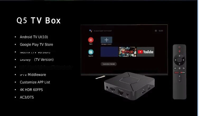 Android TV Box Q5 - 16Go / 2Go WiFi, Bluetooth