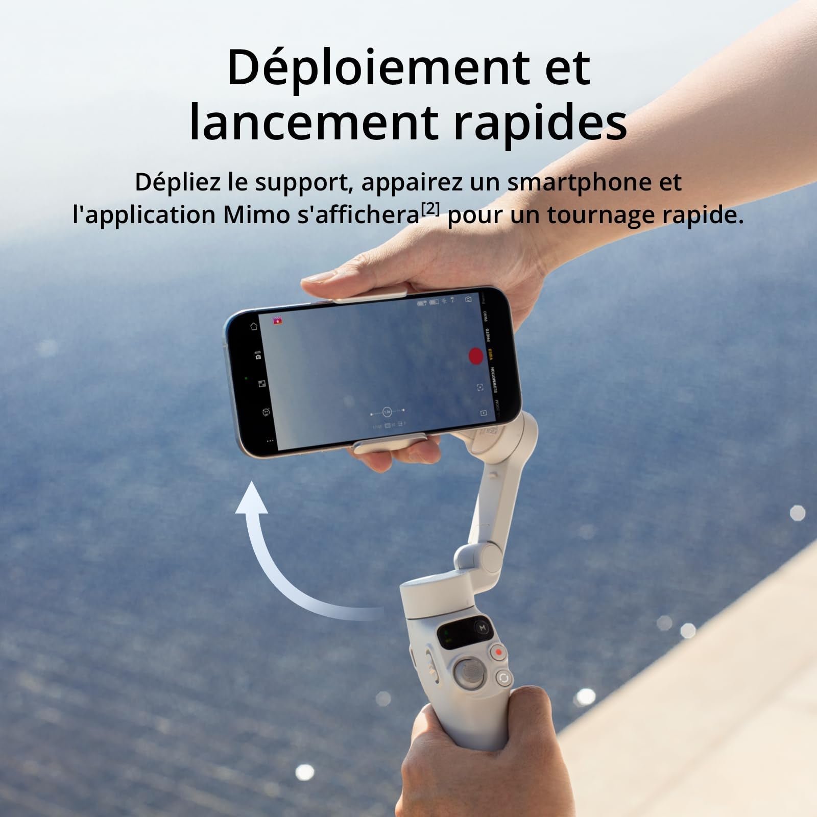Le DJI Osmo Mobile 7 est un stabilisateur intelligent pour smartphone doté de nombreuses fonctionnalités créatives. Il est non seulement compact et facilement pliable pour tenir dans votre paume, mais il démarre également automatiquement une fois déplié pour réaliser des prises de vue en un instant. Il dispose également d’un contrôle gestuel amélioré, ce qui facilite le démarrage/l’arrêt de l’enregistrement et l’ajustement du cadrage avec de simples gestes de la main. En outre, le trépied intégré améliore l’expérience de prise de vue.