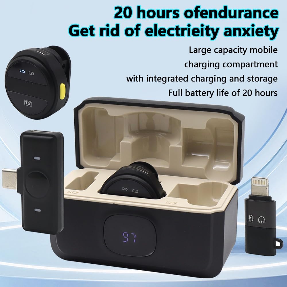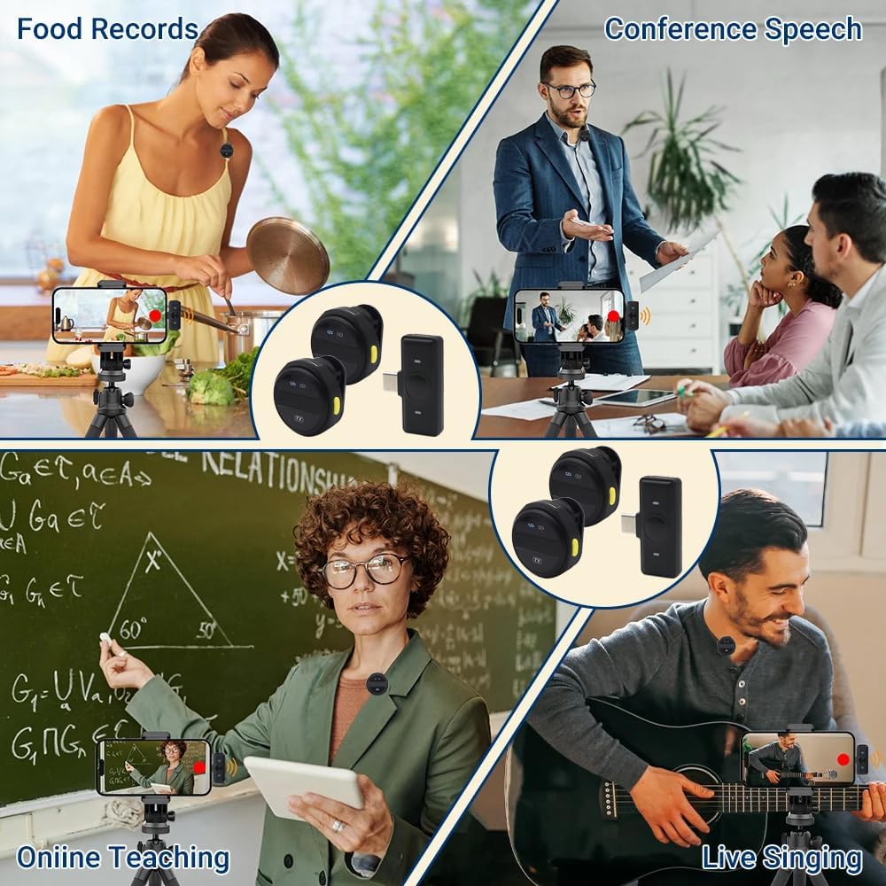 🎤 Microphone Sans Fil USB-C avec Boîtier de Recharge – Double Émetteur